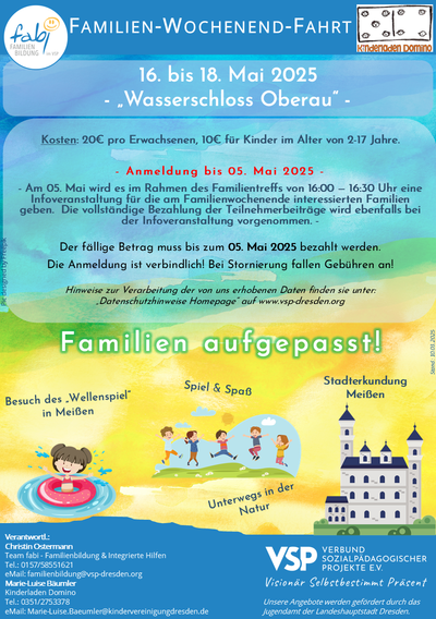 Am darauffolgenden Wochenende konntet ihr dann als gesamte Familie (aber auch als Alleinerziehende) eine Familienwochenendfahrt in die Nähe von Meißen unternehmen.
