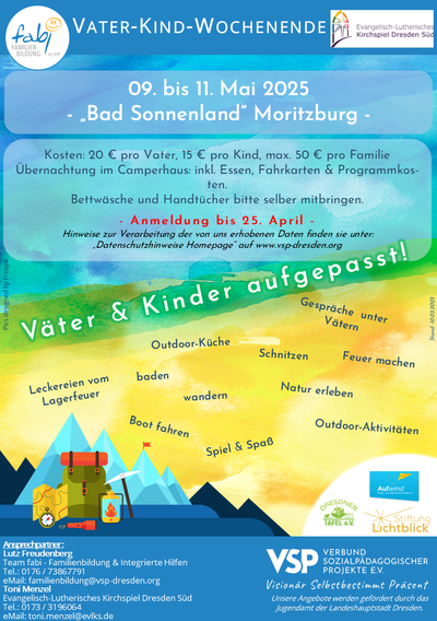 Im Mai sind wir mit euch an zwei Wochenenden weggefahren. Zuerst waren die Väter an der Reihe. Gemeinsam mit uns habt ihr ein Vater-Kind-Wochenende in Moritzburg verbracht.