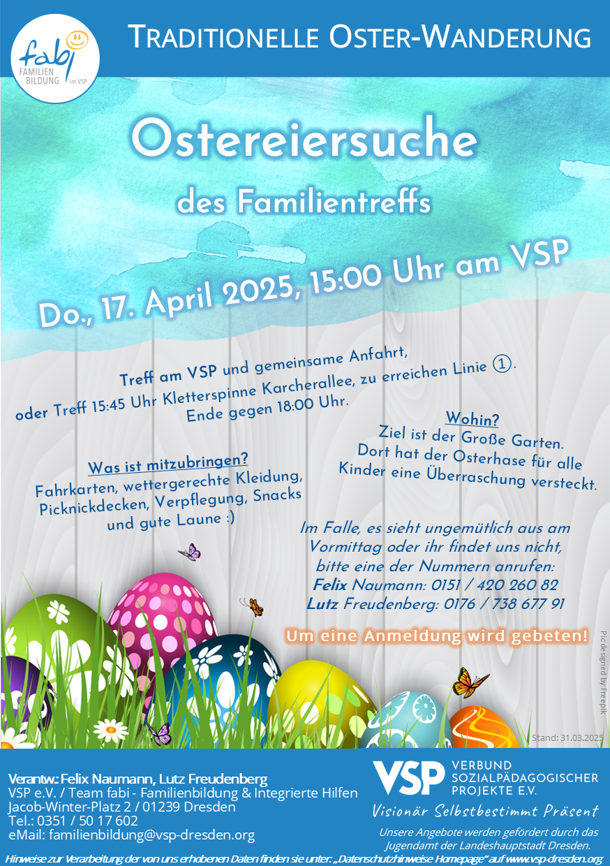 Unmittelbar vor den Osterfeiertagen hat der Osterhase für eure Kinde bei der traditionellen Osterwanderung im Großen Garten das ein und andere Osternest versteckt.