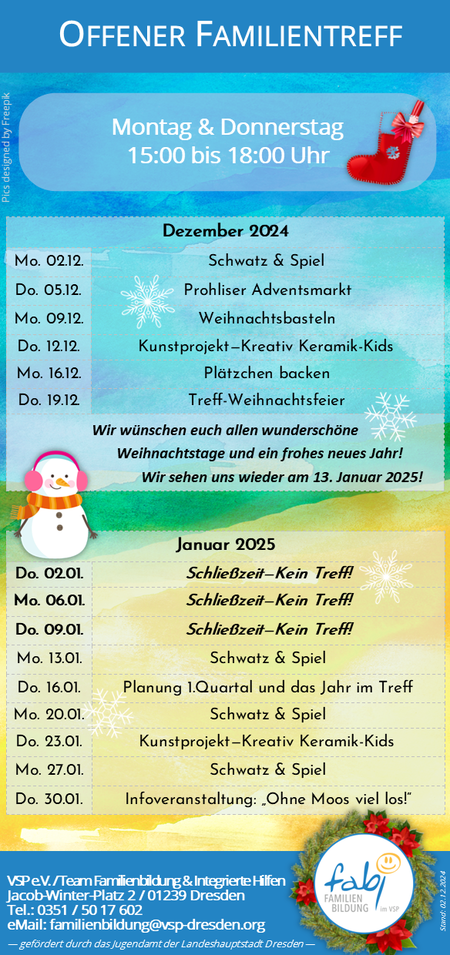 Wie gehabt trefft ihr uns zu unserem regulären Familientreffangebot vor Ort.