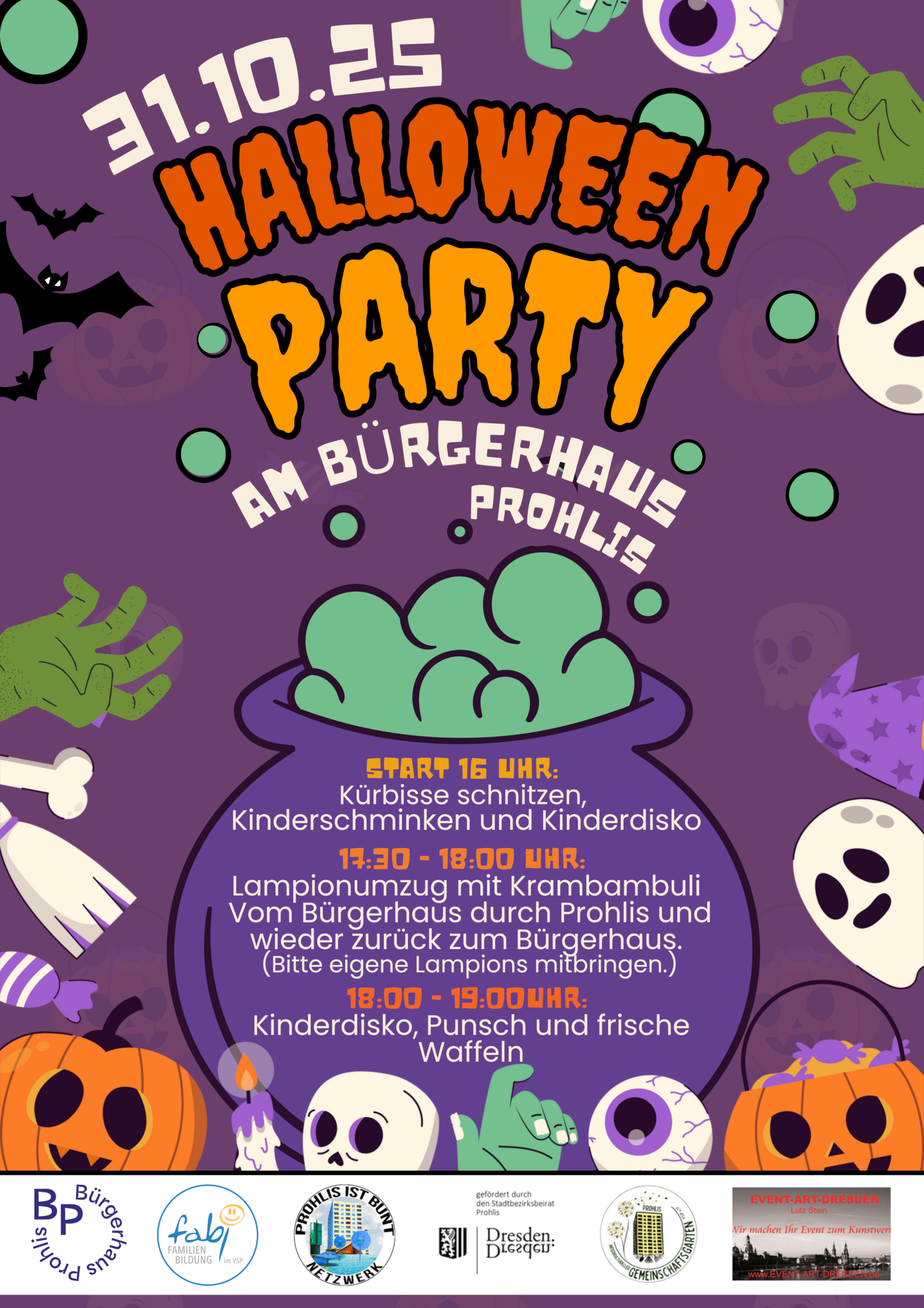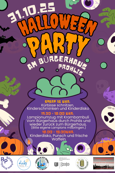 Am 31.10. seid ihr herzlich zur großen Prohliser Halloween-Party am Bürgerhaus Dresden Prohlis eingeladen.