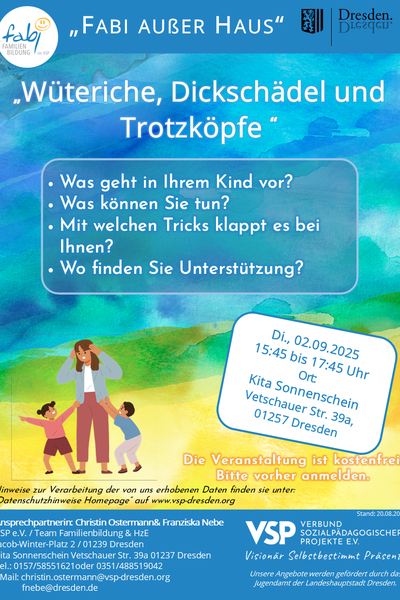 In der ersten Septemberwoche haben wir euch zu einer Bildungsveranstaltung zum Thema "Wüteriche, Dickschädel und Trotzköpfe" eingeladen.