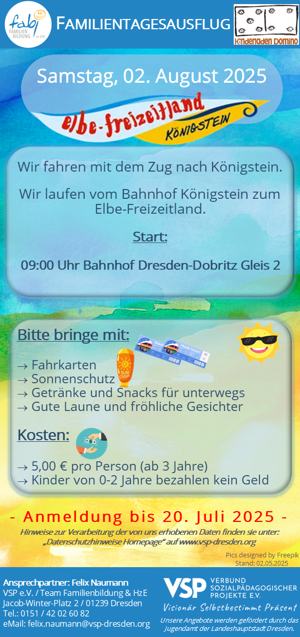 Gemeinsam mit dem Kinderladen Domino haben wir mit euch Anfang August einen Tagesausflug ins Elbe-Freizeitland nach Königstein unternommen.