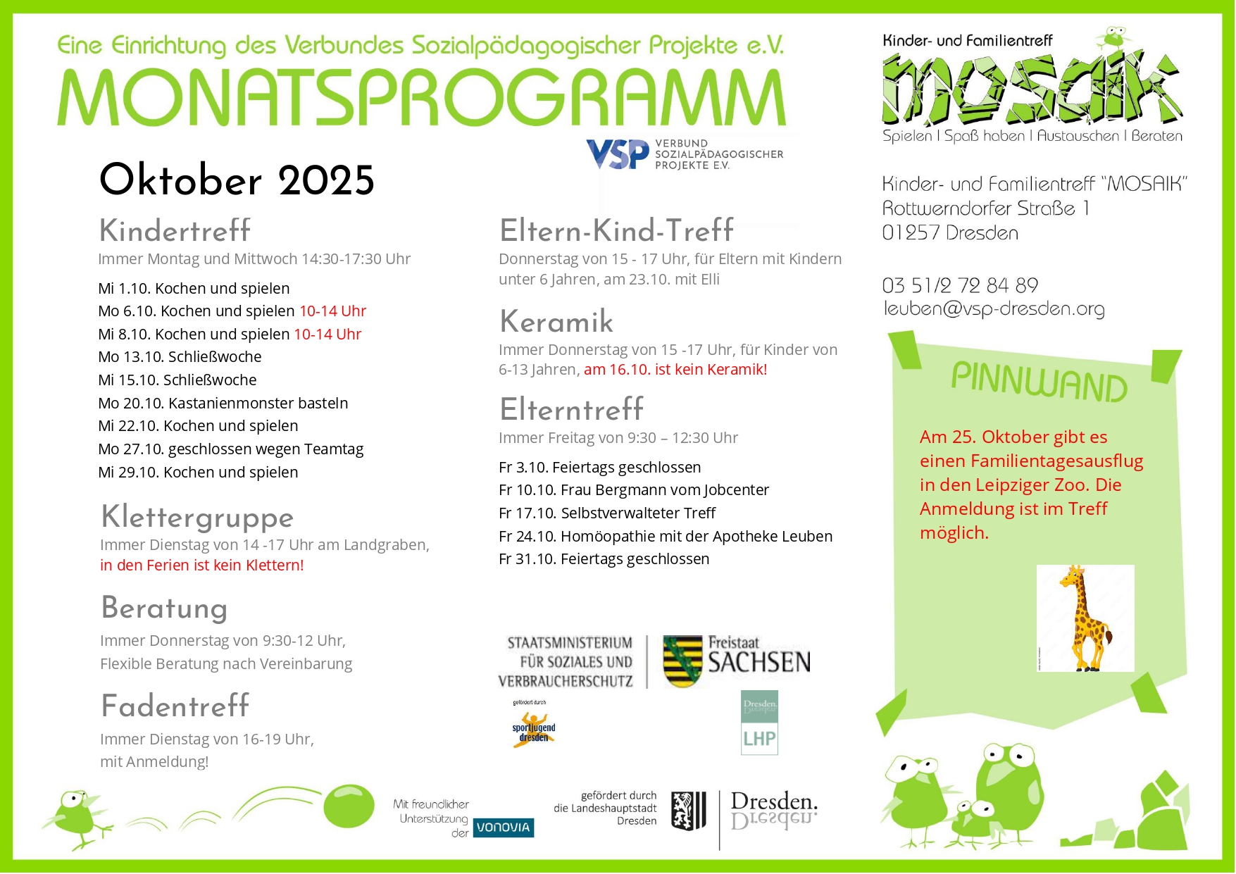 Spezielle Aktionen werden im Monatsprogramm und per Aushang angekündigt.