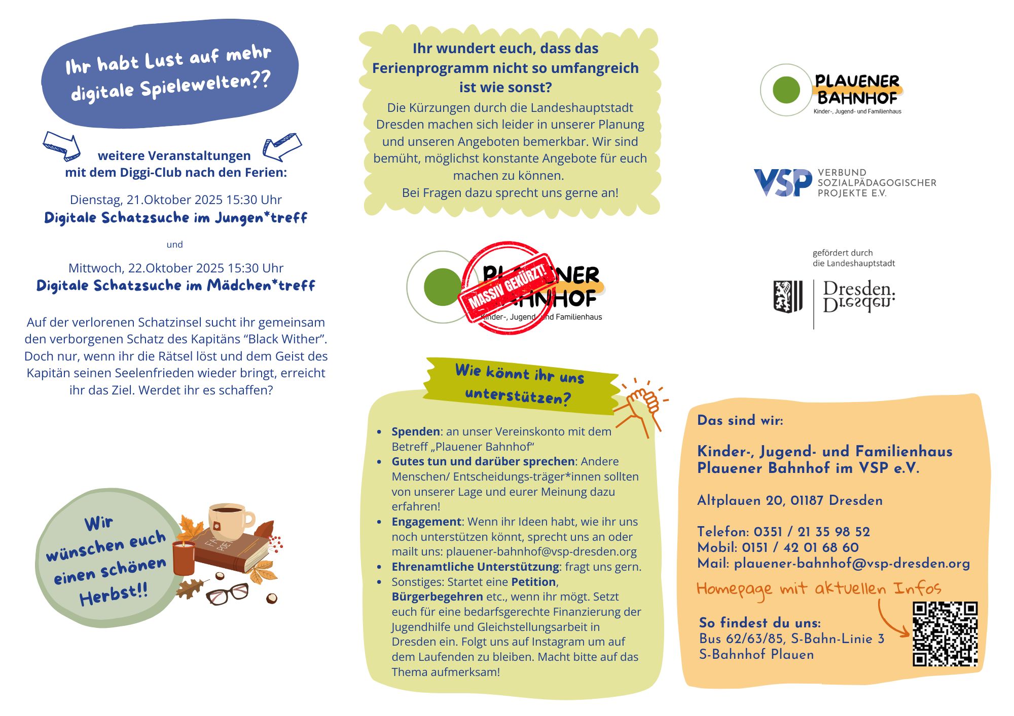 Mobil: 0151 - 420 16 860 (während der Angebotszeiten und auf Ausflügen)
