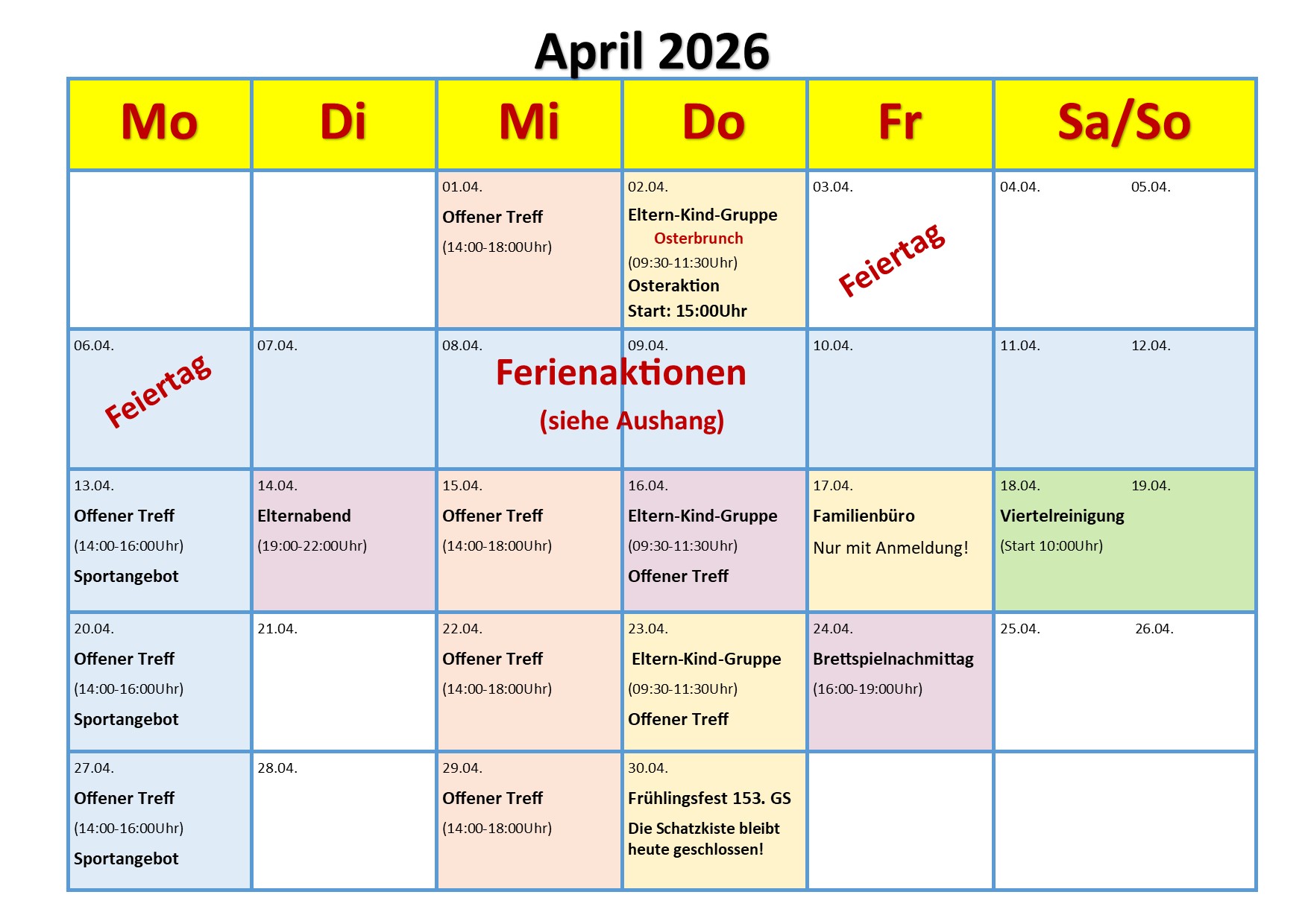 Mittwoch: 14:00-18:00 Uhr Offener Treff (auch mit Eltern)