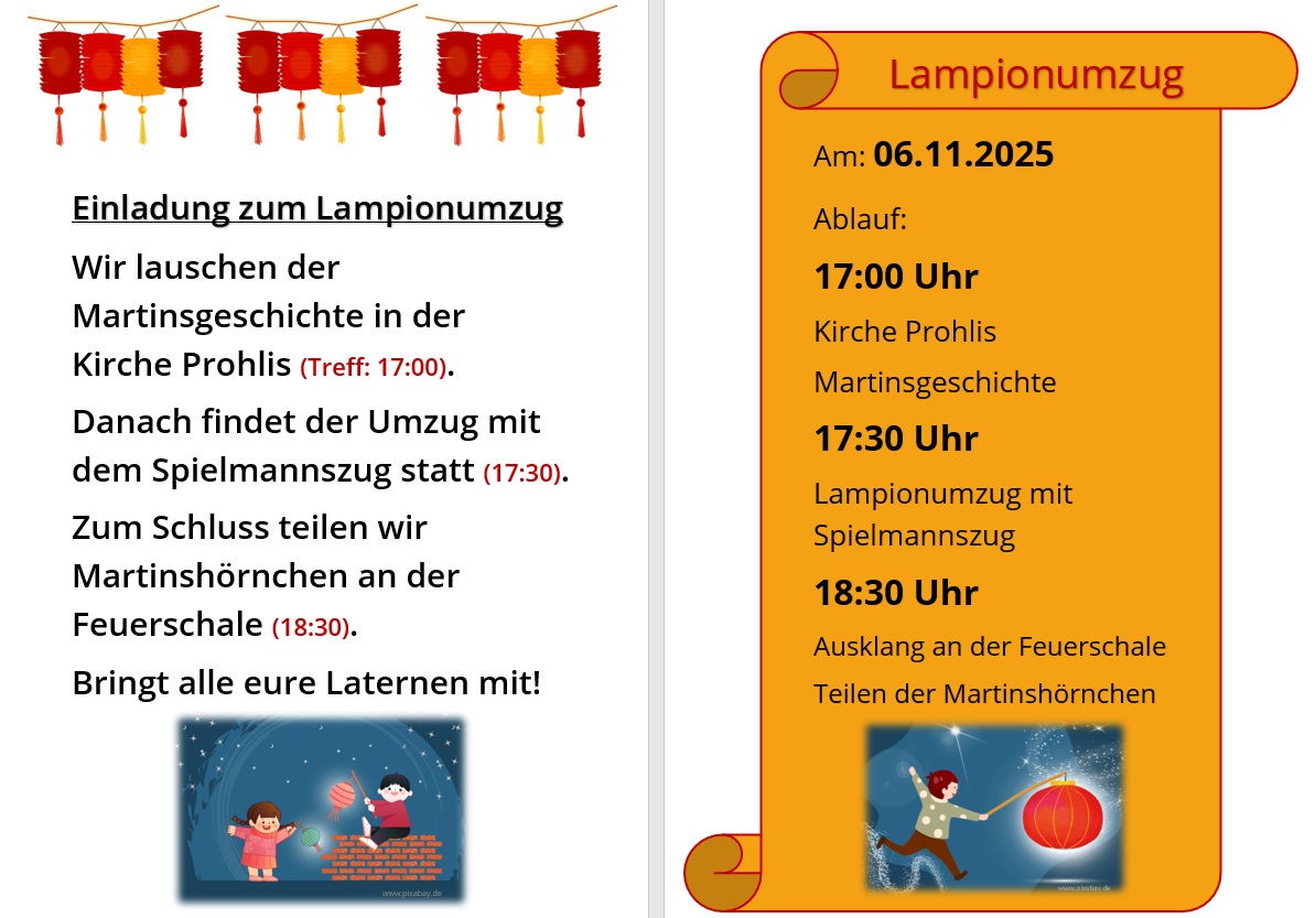 Am 06. November 2025 sind alle Familien herzlich zu unserem Lampionumzug eingeladen.
